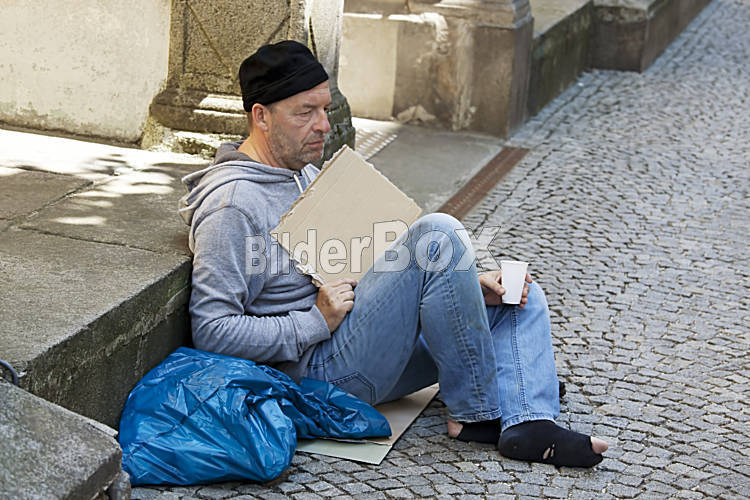 Arbeitsloser Bettler ist Obdachlos