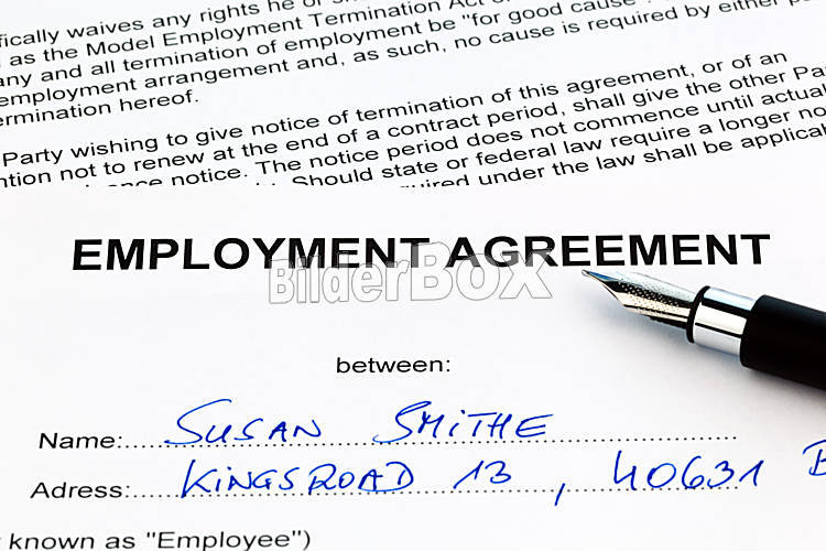 Beschreibung Der Arbeitsvertrag eines Arbeitnehmers mit dem Arbeitgeber. (in englischer Sprache)