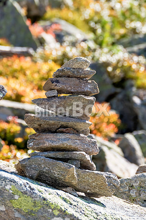 Beschreibung Aufeinander gestapelte Steine, Symbol für Wandern, Markierung, Orientierung