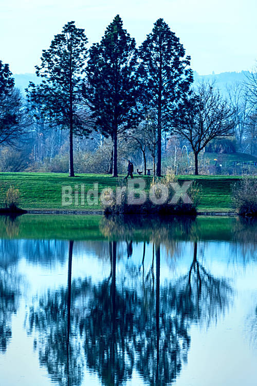 Beschreibung Bäume spiegeln sich im See, Symbol für Natur, Idylle, Kontemplation