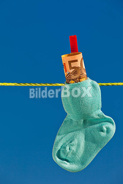 Baby Socken auf Wäscheleine mit Eurogeldscheinen
