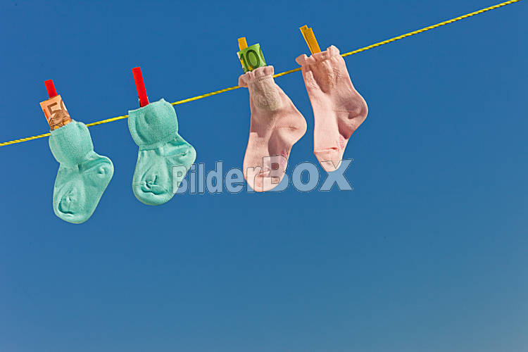 Baby Socken auf Wäscheleine mit Eurogeldscheinen