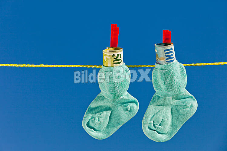 Baby Socken auf Wäscheleine mit Schweizer Franken