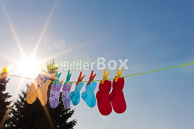 Baby Socken auf Wäscheleine zum Trocknen