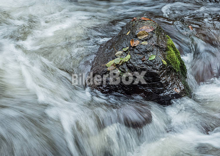 Beschreibung Ein Bach mit Steinen und fliessendem Wasser. Landschaft erleben in der Natur.