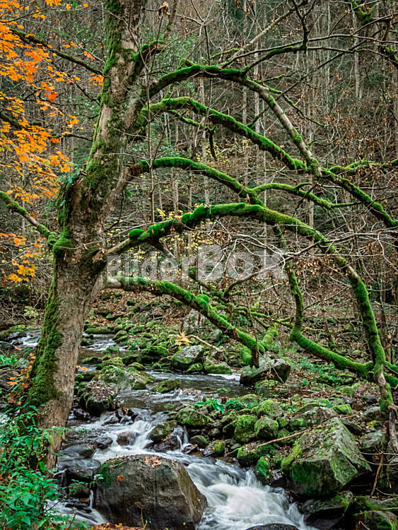 Beschreibung Ein Bach mit Steinen und fliessendem Wasser. Landschaft erleben in der Natur.
