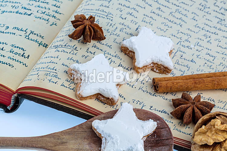 Beschreibung Zutaten für Kekse und Plätzchen, die zu Weihnachten gebacken werden.
