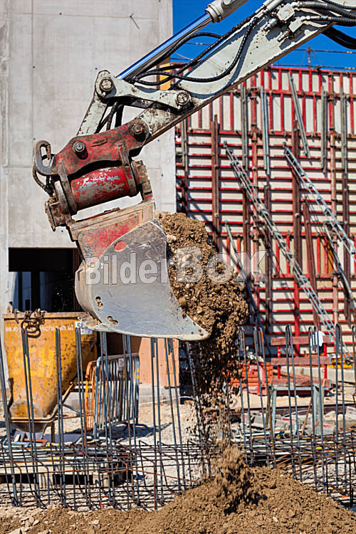 Beschreibung Ein Bagger mit Schaufel auf einer Baustelle