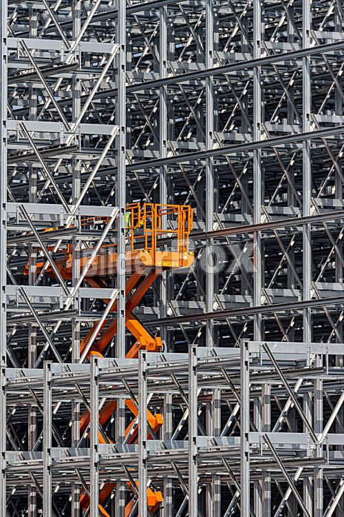 Beschreibung Ein Hochregal Lager eines Unternehmens wird gebaut