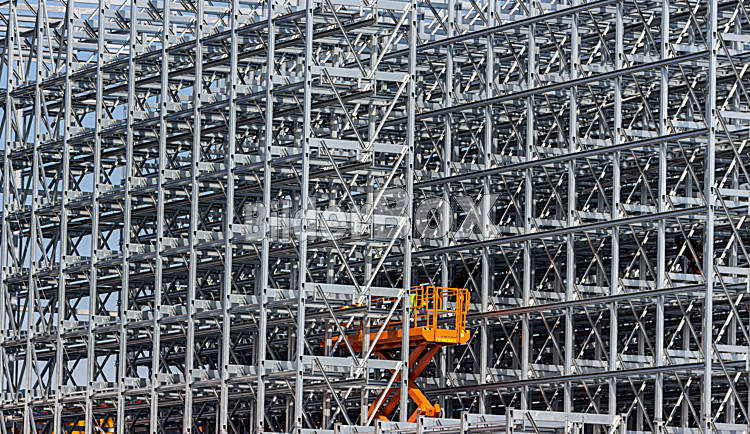 Beschreibung Ein Hochregal Lager eines Unternehmens wird gebaut