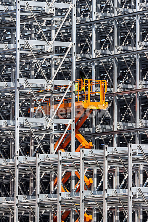Beschreibung Ein Hochregal Lager eines Unternehmens wird gebaut