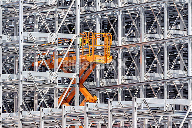 Beschreibung Ein Hochregal Lager eines Unternehmens wird gebaut