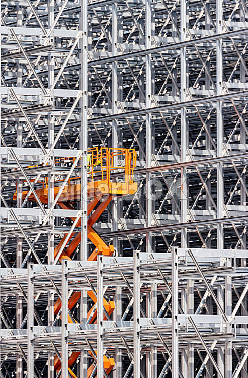 Beschreibung Ein Hochregal Lager eines Unternehmens wird gebaut