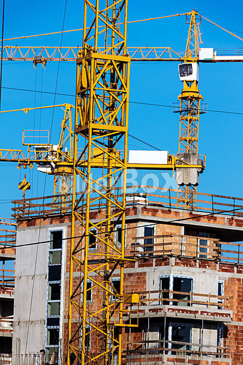 Beschreibung Baustelle für ein Wohnhaus für mehrere Mieter. Urbaner Wohnbau in der Stadt.