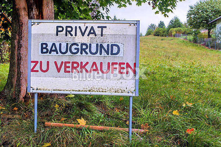 Beschreibung Schild mit der Aufschrift: Baugrund zu verkaufen