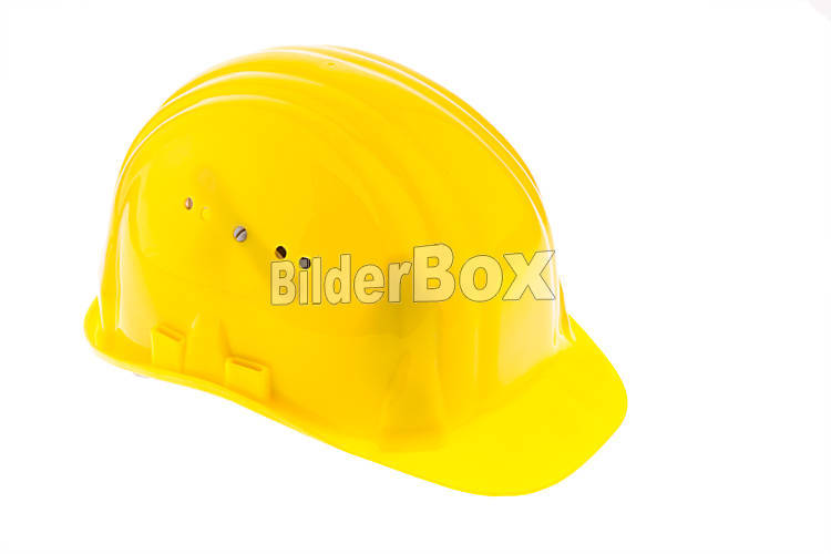 Beschreibung Bauhelm eines Bauarbeiters isoliert vor weissem Hintergrund