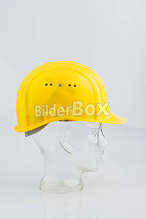 Beschreibung Bauhelm eines Bauarbeiters isoliert vor weißem Hintergrund