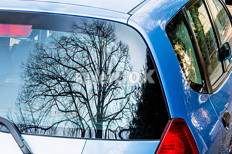 Baum spiegelt sich in Autofenster