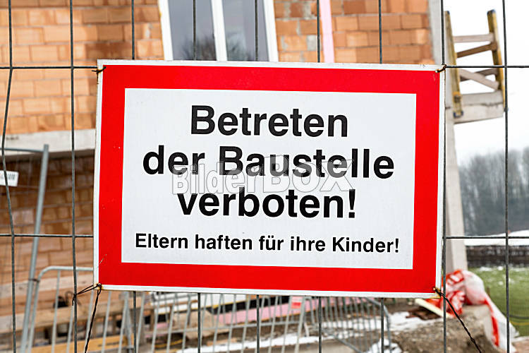 Beschreibung Baustelle, Schild, Betreten Verboten, Symbolfoto für Verbote, Verkehrssicherheit und Haftungsrecht