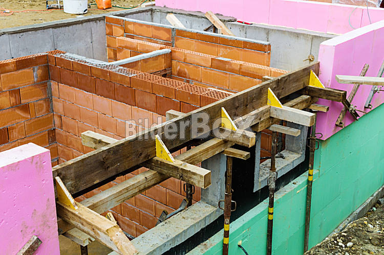 Beschreibung Ein Einfamilienhaus wird in Massivbauweise mit Ziegel gebaut.