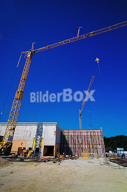 Beschreibung Die Baustelle eines neuen Firmengebäudes für Produktion und Verwaltung