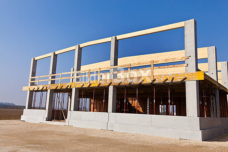 Beschreibung Ein Betriebsgebäude für Lager und Produktion wird errichtet. Gewerbliche Baustelle.