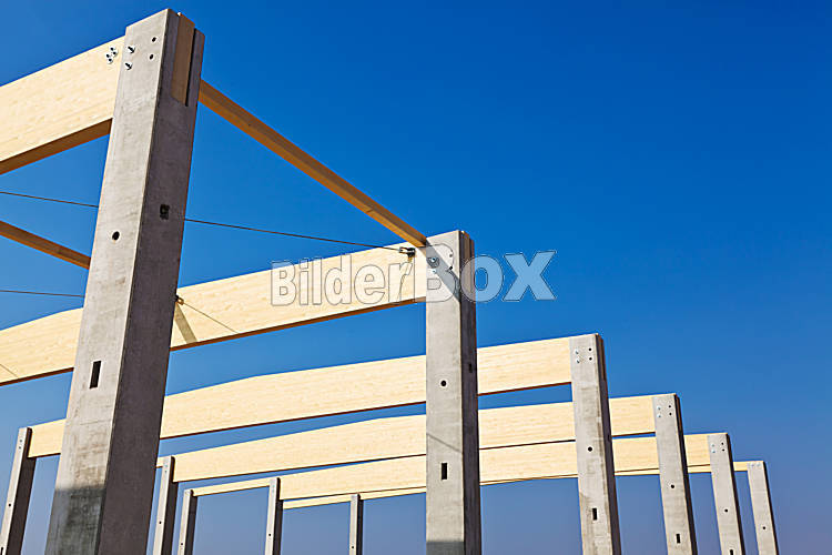 Beschreibung Ein Betriebsgebäude für Lager und Produktion wird errichtet. Gewerbliche Baustelle.
