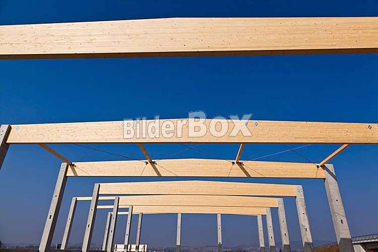 Beschreibung Ein Betriebsgebäude für Lager und Produktion wird errichtet. Gewerbliche Baustelle.