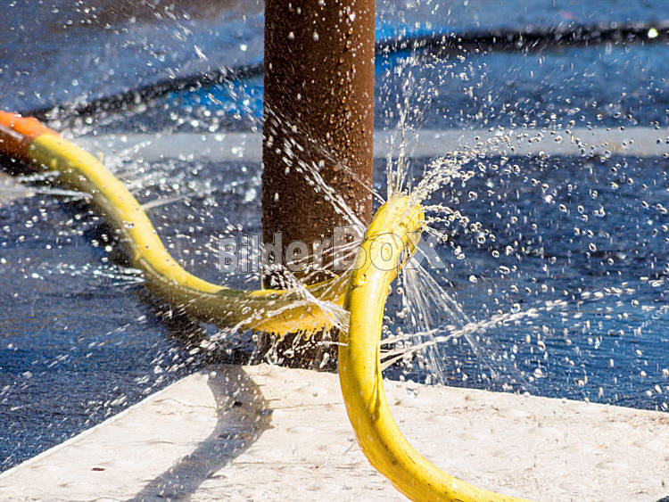 Beschreibung Bewässerungsmethode und defekter Schlauch, Symbolfoto für Probleme, Pannen, Fehler
