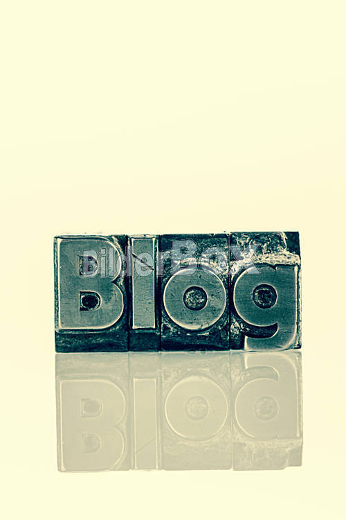 Beschreibung Das Wort Blog mit Bleibuchstaben geschrieben. Symbolfoto für bloggen