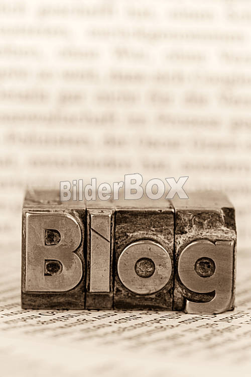 Beschreibung Das Wort Blog mit Bleibuchstaben geschrieben. Symbolfoto für bloggen