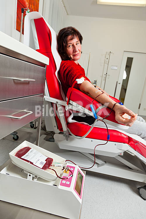 Beschreibung In einem Blutlabor wird beim Blut Spendenblut abgenommen.