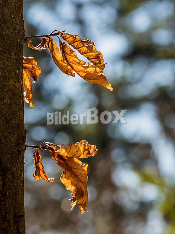 Beschreibung Braune Blätter im Herbst auf einem Baum