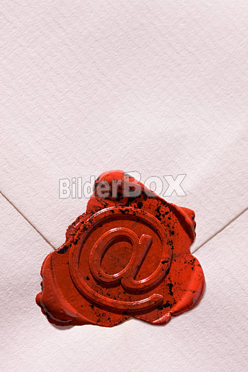 Beschreibung Leerer Briefumschlag mit E-Mail Zeichen als Siegel