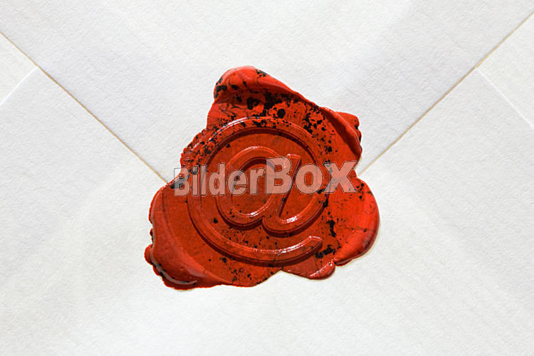 Beschreibung Leerer Briefumschlag mit E-Mail Zeichen als Siegel