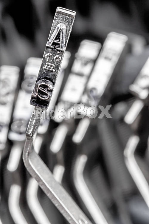 Beschreibung Buchstaben einer alten Schreibmaschine. Symbolfoto für Kommunikation in früheren Zeiten