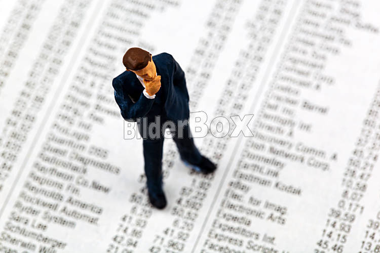 Businessmann, Figur auf Aktienkursen