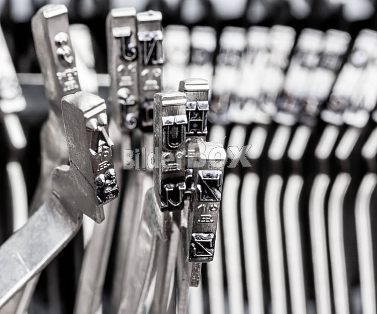 Beschreibung Typen einer alten Schreibmaschine. Symbolfoto für Mobbing und Chaos