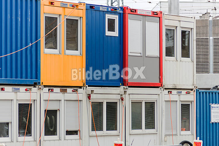 Beschreibung Container auf einer Baustelle, Symbolfoto für Büros und Wohnungsbau