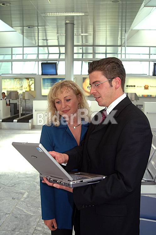 Erfolgreicher Mann und Frau mit Notebook