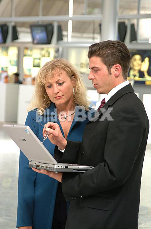 Erfolgreicher Mann und Frau mit Notebook