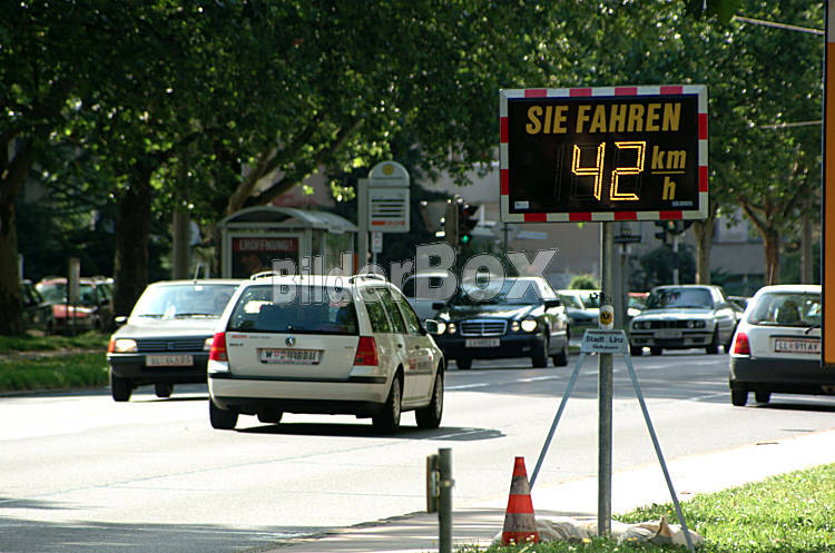 Beschreibung Informative Radarmessungen im Stadtbereich Autos, Automobils, Autofahrender, Autofahrerin, Auto fahren, Personenkraftwagens, Kfz, PKW, Kraftfahrzeuges, Strassenverkehr, Straßenverkehr,...