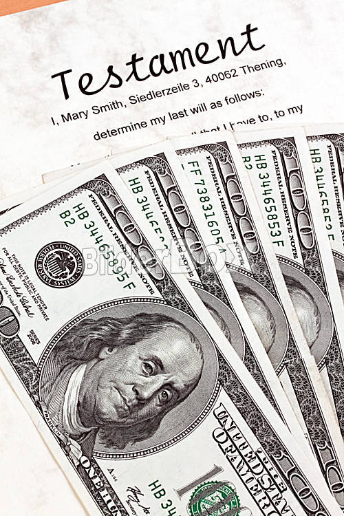 Beschreibung Viele Dollar Geldscheine und englisches Testament