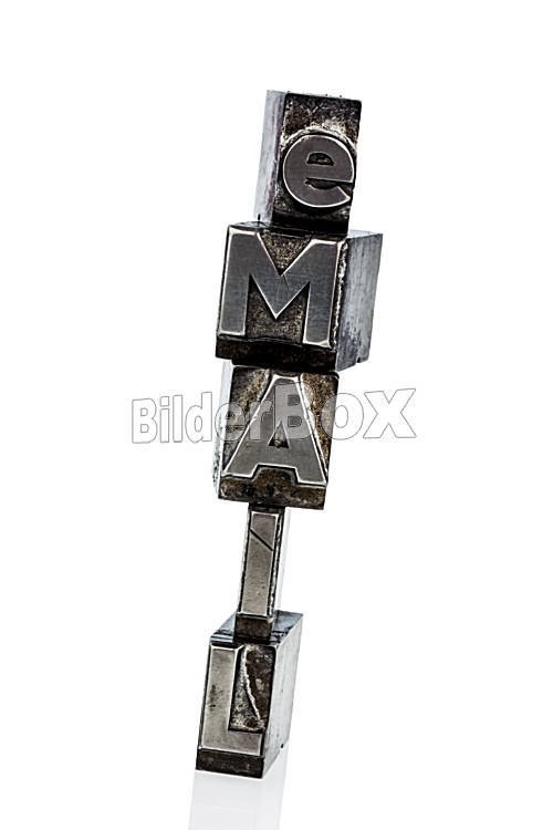 Beschreibung Das Wort " e-mail " in Bleibuchstaben geschrieben. Symbolfoto für schnellen Schriftverkehr