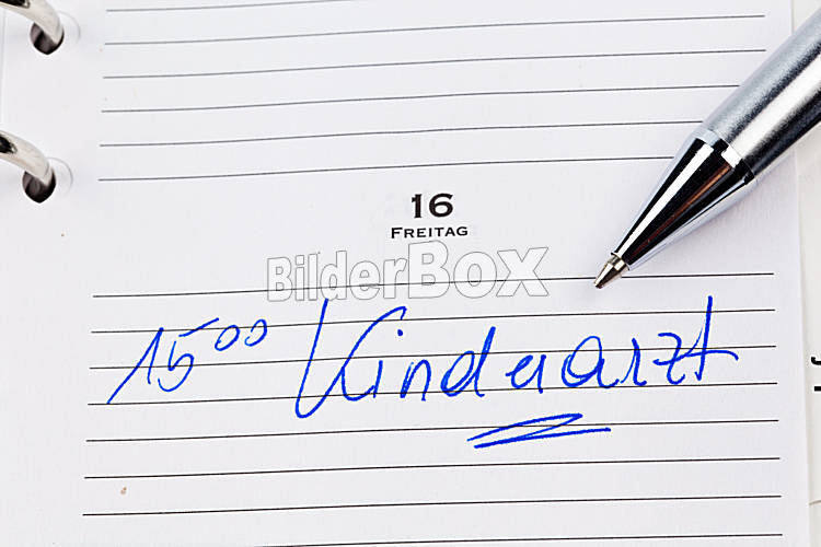 Beschreibung Ein Termin ist in einem Kalender eingetragen: Kinderarzt