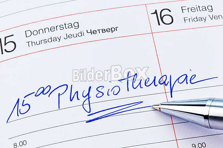 Beschreibung Ein Termin ist in einem Kalender eingetragen: Physiotherapie