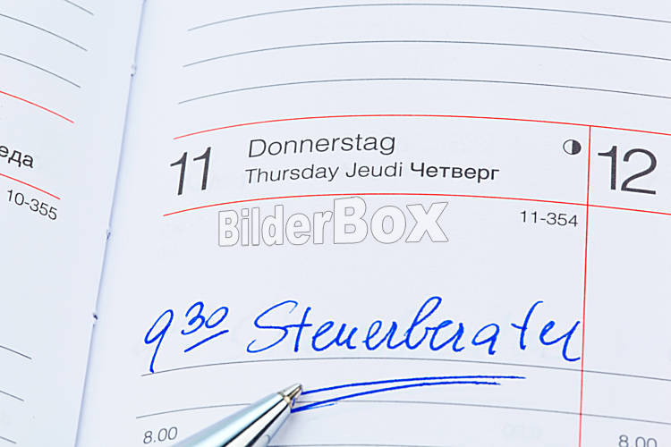 Beschreibung Ein Termin ist in einem Kalender eingetragen: Steuerberater