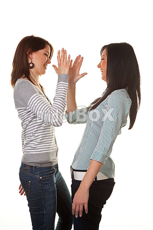 Beschreibung Zwei junge Mädchen schlagen ein und vertragen sich