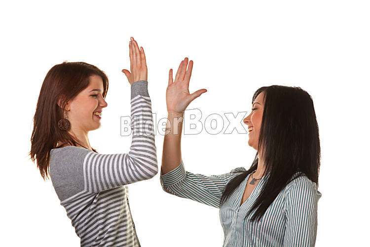 Beschreibung Zwei junge Mädchen schlagen ein und vertragen sich