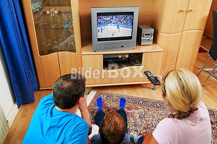 Beschreibung Eine Familie beim Fernsehen mit Fernsehapparat